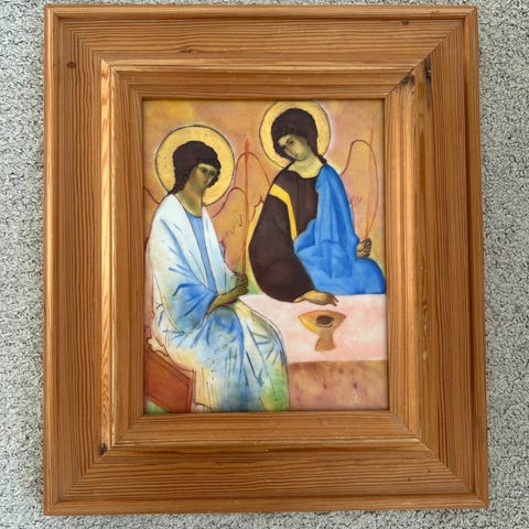Kehystetty kuva Jumaläidistä ja Jeesus lapsesta