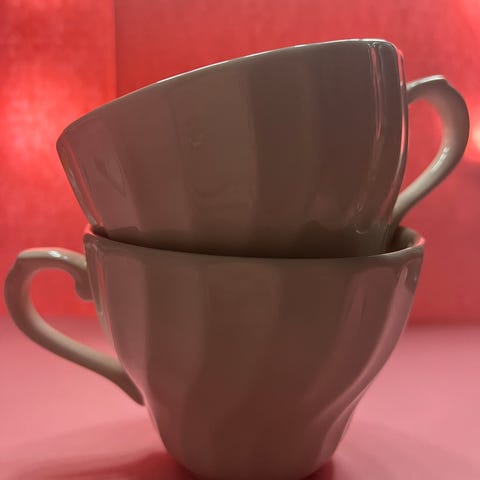 Ruusukuvioinen teekuppi ja teepussin asetti