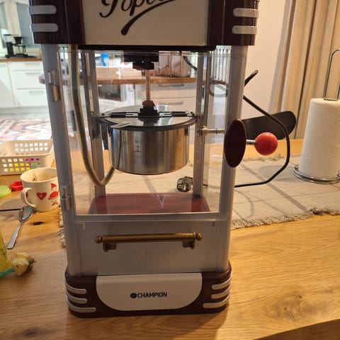 Vähän käytetty, erittäin siisti popparikone. Tekee popparit suoraan kulhoon