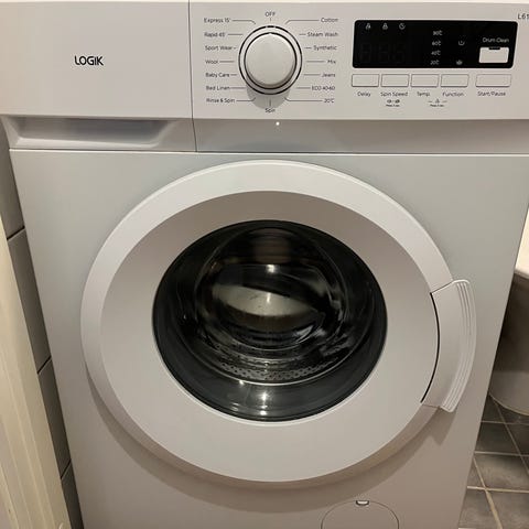 Hyväkuntoinen Logikin edestä täytettävä pesukone, jossa monipuoliset pesuohjelmat jokaiseen tarpeeseen.