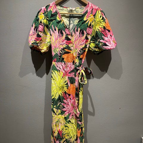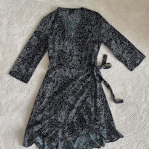 Kauniisti istuva trikoinen kietaisumallinen mekko. Ei jää kaula-aukosta lököttämään! Itselle liian nafti, passeli S ja XS kokoja käyttävälle. Pituus noin sääreen.