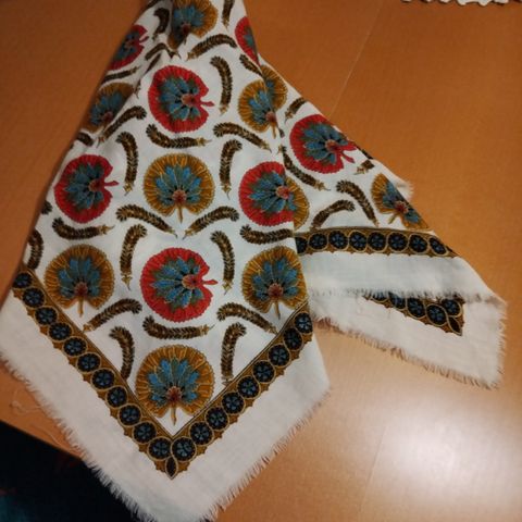 Kaunis vanha huivi, koko 71x72cm.muutama haurastuma kohta, näkyy kuvissa.