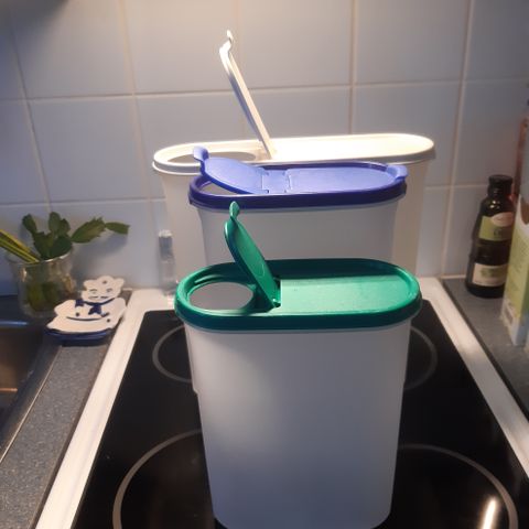 Myydään Tupperwaren tiivis purkki. Vetoisuus 7dl. Väri tummansininen.