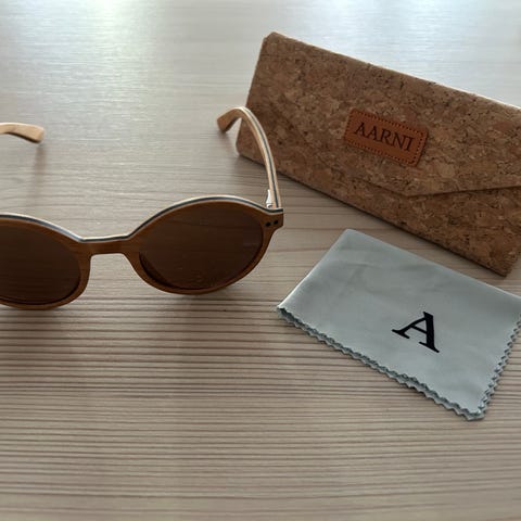 Klassisen tyylikkäät miesten aurinkolasit. Erittäin siistit, linsseissä ei naarmuja. Suojakotelo mukaan sekä säämiskäliina. Tanskalaista muotoilua!