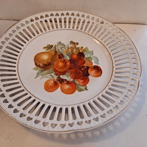 Koristeellinen lautanen, jossa on kukka- ja lintukuvio. Lautasessa on aaltoileva reuna ja se on koristeltu kultaisilla yksityiskohdilla. Sopii hyvin koriste-esineeksi tai keräilykohteeksi. Halk. 13 cm.