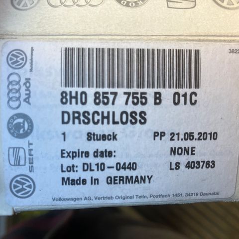 Audien uusi keskipenkin turvavyö alkuperäisosana 8D0857703B