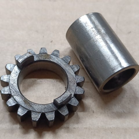 Hyväkuntoinen kytkinakseli rattaineen. Akselin tuotekoodi: 24121-46000