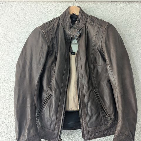 Naisten nahkainen musta ajotakki. Koko M. Paksua laadukasta nahkaa. Vetoketjun takana leveä kaistale nahkaa, ei tuuli tule sisään. Laadukas ajotakki, nahka paksua, ei erillisia vahvikkeita.