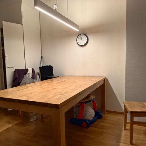 Vähän aikaa käytössä ollut kevytrakenteinen ruokapöytä tammi/musta.