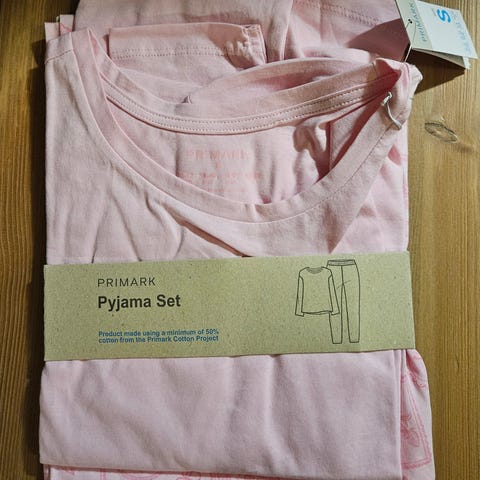 Myydään settinä kahdet pyjamahousut ja yksi t-paita. Viininpunaiset housut satiinimaista kangasta. Nallehousut ovat nukkaantuneet (ks. Kuva) mutta muutoin hyvät.
