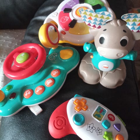 Paina lelun päältä niin kuuluu musiikkia, eläinten ääniä ja karuselli pyörii.