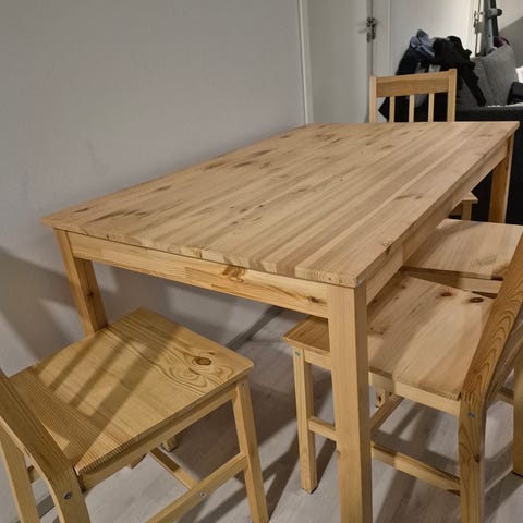 Kansi kulunut, vaatii käsittelyn. Ikean pienet tuolit 4 kpl