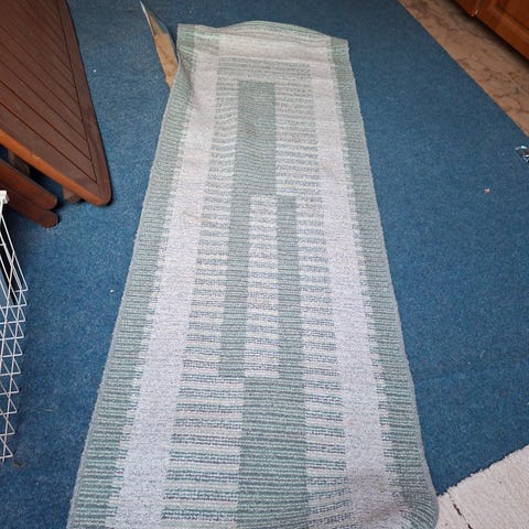Tähti käytävämatto 80x300. Pientä kulumaa/rispautumaa muutamassa kohtaa reunassa. Taloudessa on koira.
