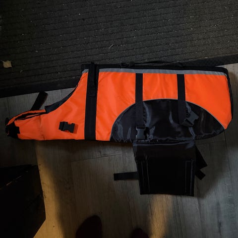 Käyttämättömät ison koiran pelastusliivit koko XL. Selän mitta 45 cm.