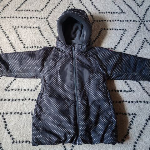 Irrotettava huppu, helmassa kiristyskuminauha. Sivutaskut, hyvä, tukeva vetoketju. Lämmin fleecevuori. Ei nimikoitu.