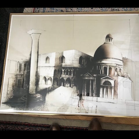 Serie Portofino Pitt. Grafonara Venetsia printti. Työn korkeus on 51 cm ja leveys 40 cm. Kehys 76 X 57 cm.