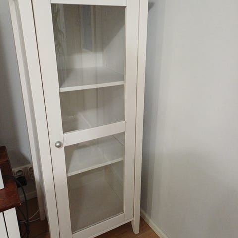 Hyväkuntoinen lasivitriini, alaosassa kolme laatikkoa. Väri kirsikka. Maksu noudettaessa käteisellä.