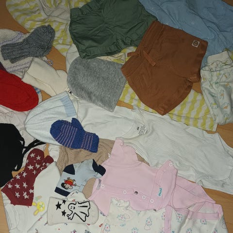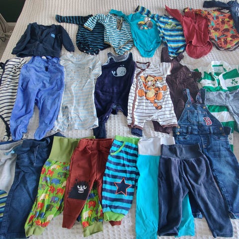 Pesty hajusteettomalla pesuaineella. Paljon Yöpukuja, bodyja, housuja, unipussit, haalareita... merinovilla väliasuja... Nouto Tiituspohja tai Seppälä