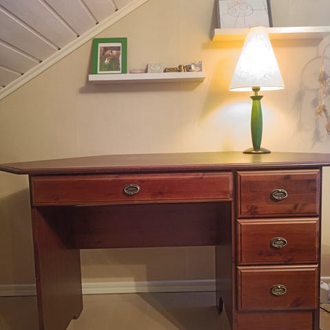 Kumamallinen Laulumaan työpöytä. Väri kirsikka. Maksu noudettaessa käteisellä.