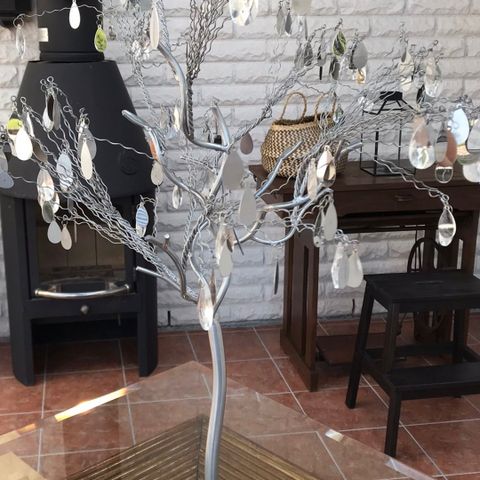 Siistissä käytetyssä kunnossa oleva Pentik Loiste kattoon ripustettava kynttelikkö kuudelle tuikulle. Ollut käytössä, joten jotain tummentumaa muutamissa hopean värisissä lehdissä.