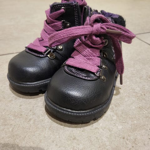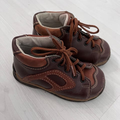 Kavat-merkkiset lastenkengät. Todennäköisesti aitoa nahkaa (ei materiaalimerkintää). Nahka sen verran kovettunut että vaatii huoltoa, muuten ehjät kengät. Koiratalous.