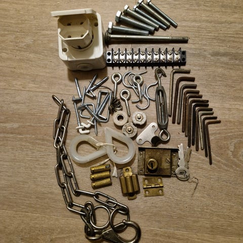 Messingöity varmuusketju, paketti avaamaton. Paketissa asennukseen tarvittavat ruuvit.