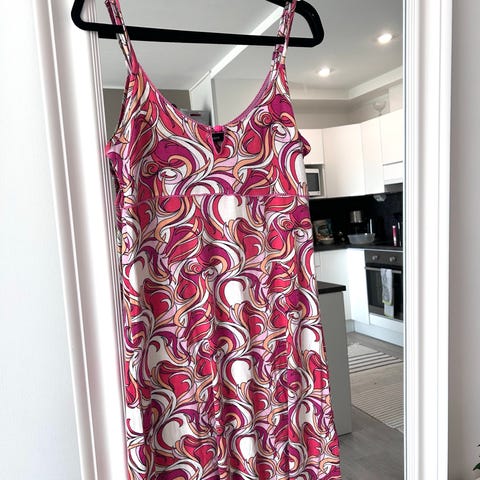 Mustavalkoinen, kukkakuvioinen Lindexin mekko. Mekossa on lyhyt helma ja v-aukko. Ehjä ja oikein hyväkuntoinen!