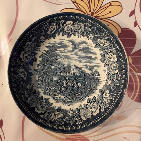Kensington lautanen, jossa on kaunis kukallinen kuviointi. Valmistettu posliinista, lautasessa on ruusukuvioita sinisen ja punaisen sävyissä. Sopii koristeeksi tai tarjoiluun. 2 matalaa ja yksi syvä.