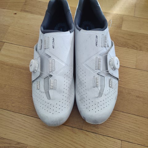 Hyvässä käyttökunnossaa olevat Shimanon maantiekengät joihin sopii sekä perinteiset kolmiruuviset maantieklossit, mutta myös spd-maastoklossit. Jonkun verran käytön jälkeä ja pohjassa selkeästi kävelykulumaa. Pohjallisen pituus noin 30cm ja leveys leveimmästä kohtaan noin 9,5cm.