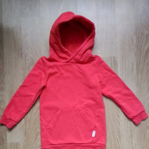Vaaleansininen/vaalean turkoosi Gugguun klassikkohuppari koossa 110. On mielestäni hiukan niukka koko. Paksua, laadukasta kangasta.