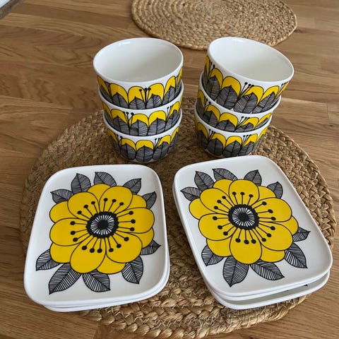 Astiastossa on kaunis kukka kuviointi ja tälle astiastolle harvinainen vain lyhyen aikaa myynnissä ollut vaaleanpunainen väri. Sopii erinomaisesti sekä arki- että juhlakäyttöön.