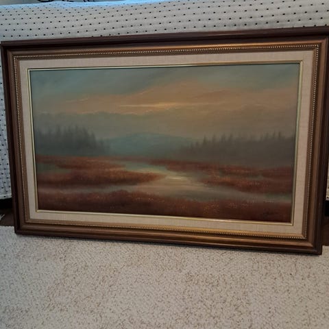 Hyväkuntoinen hieno öljyvärimaalaus Levin Petsukkalammesta, vuosi 1991. Koko 102,5×74 cm