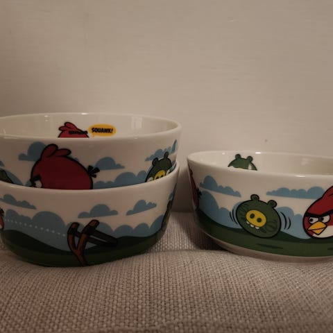 Arabian ja Rovio Entertainment Ltd:n Angry Birds jälkiruoka- tai aamupalakulho. Tilava malli, yli 4 dl vetoisuus. Sisäpuolella vähän käytön jälkiä, muuten kiiltävä ja naarmuton, vaikka pohjassa tieto astian olevan vuodelta 2009! Melkein vintage jo.