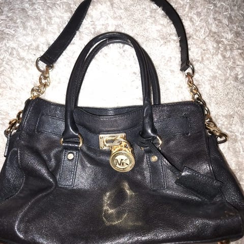 Michael Kors nahkainen ja erittäin hyväkuntoinen musta krokokuvioinen käsilaukku