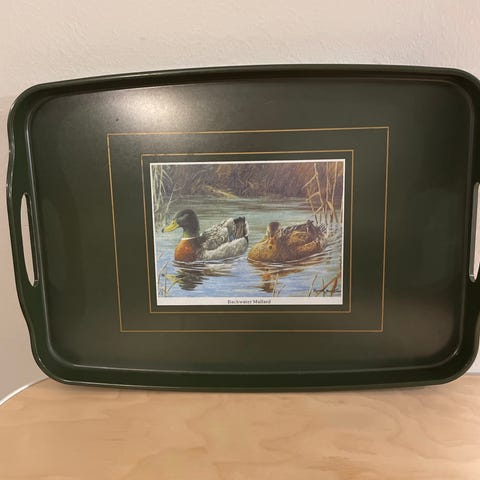 Sininen / ultramaniinsininen / sähkönsininen metallinen tarjotin.