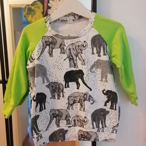 Beige pitkähihainen paita norsujen kuvilla koossa 80 cm.
