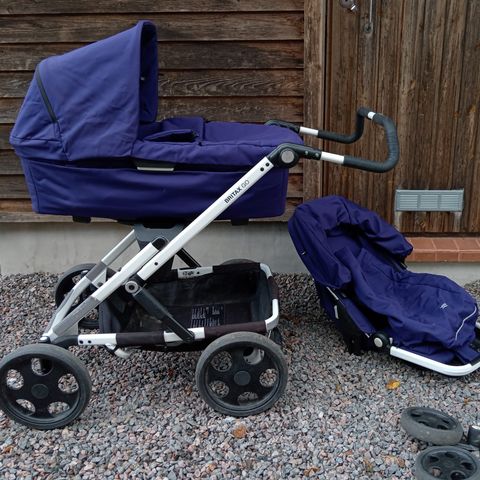 Britax lastenvaunut, seisomalauta, talvirenkaat erikseen, ja kaikki kuvassa näkyvät lisävarusteet, mukaan lukien talvirenkaat.