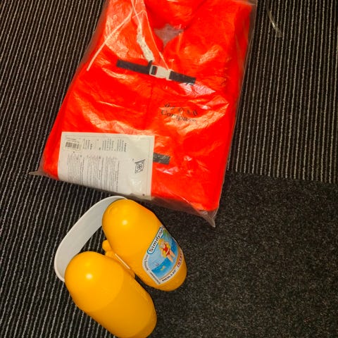 Viinipullon pelastusliivi pillillä.