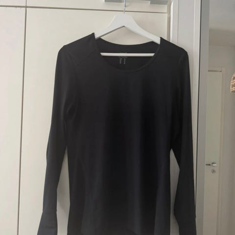 Musta ribattu "treenipaita". Vetoketju aukeaa molemmista päistä. Lapussa koko M, muistuttaa enemmän kokoa S.