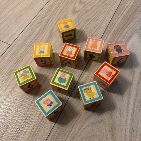 Myynnissä Pipsa Possu puupalikat joissa numerot yhdellä sivulla.