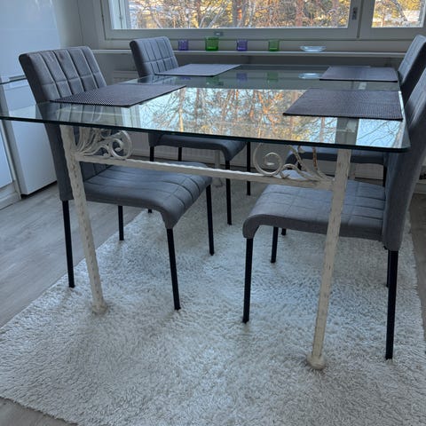 Cobellosta ostettu ruokapöytä, ovh 1300€. Erittäin hyväkuntoinen ja tukeva 4-6 hengen pöytä. Vähän käytetty, ei käytön jälkiä. Ollut aina saman kodin ruokasalissa (hajuton ja siisti koti) Metalijalat.