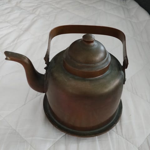 Upea kuparikannu myynnissä,23-25cm. halkaisijaltaan. Korkeus 25cm.