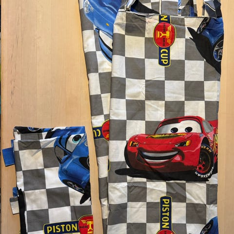 Myydään lähinnä varastossa lojuneet autot, cars sivuverhot.140cmx 180cm.
