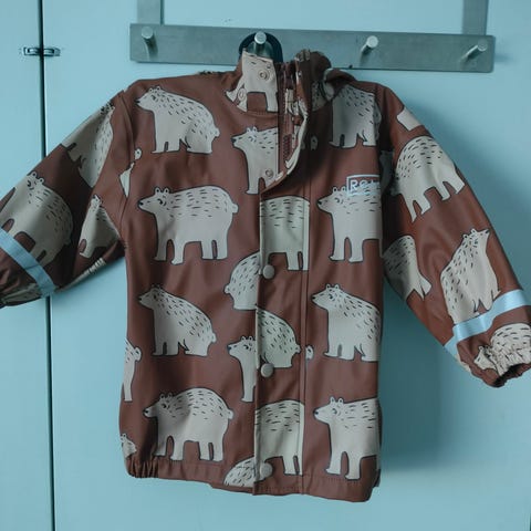 Muuten kuin uusi, mutta kuraleikeistä jäänyt tummentumaa takin sisään. Ei haittaa käyttöä.