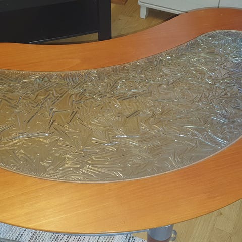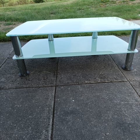 Myydään metallijalkainen, soikea kolmitasoinen sohvapöytä. Pöydän ylätaso on kirkasta lasia, ja kaksi erillistä alatasoa vaalean vihreitä puolipyöreitä. Ylin taso on 45 cm, toinen taso 24 cm, alin taso 16 cm korkeudella- Myydään tarpeettomana. (Ps. Varkauden, Pieksämäen ja Joroisten alueille ilmainen kuljetus.)