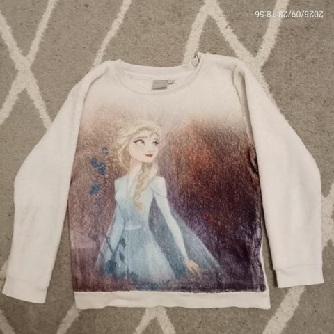 Frozen fleeze pusero, jossa kokona 6. Silmämääräisesti arvioituna voisi olla lähellä noin kokoa 128.