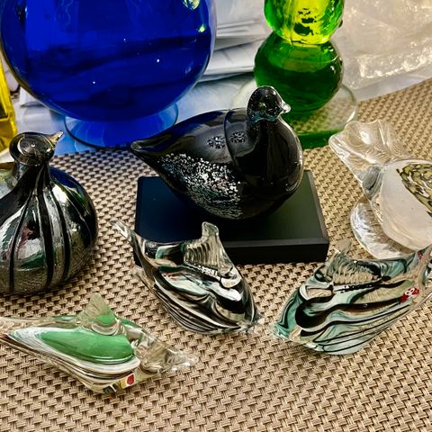 Söpö pikkulintuja esittävä Högbacka Sipoon keramiikka koriste-esine. 90-luvulta. Suomalaista käsintehtyä keramiikkaa. Linnut voivat seisoa pöydällä tai voidaan laittaa narulla roikkumaan keskellä olevan reiän kautta.