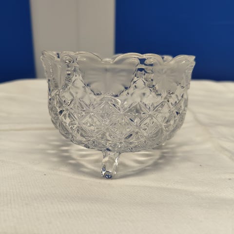 Hedelmäkulho jalalla halkaisija 30 cm, noin 22,5 cm korkea,katso kuvassa kulhon sisämaalauksia.
