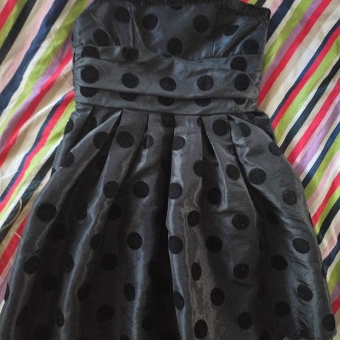 KappAhlin We Tweens -kokoelman ruutupaitamekko vyöllä. Seassa hieman kultalankaa tuomassa juuri sopivan hienostuneesti bling blingiä. Hihat ovat 3/4 pituiset ja käärittävissä lyhyiksi (nappikiinnitys). Laskosompeleita edessä rinnuksissa ja takana keskiselässä. Helma takaa pidempi. Materiaali 100 % puuvilla, pesu 40 astetta. Siistikuntoinen, ehjä ja tahraton, vain aivan aavistus pientä pesuhaituvaa, nappilistan alin nappi puuttuu.