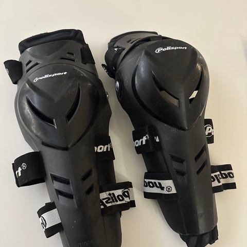 Uudet mustat aikuisten polvisuojat motocrossiin ja muuhunkin urheiluun! Koko S, joka sopii S/36 vaatekokoa käyttävälle. Hyvät tarrasäädöt, joilla tuet pysyvät tukevasti paikallaan!